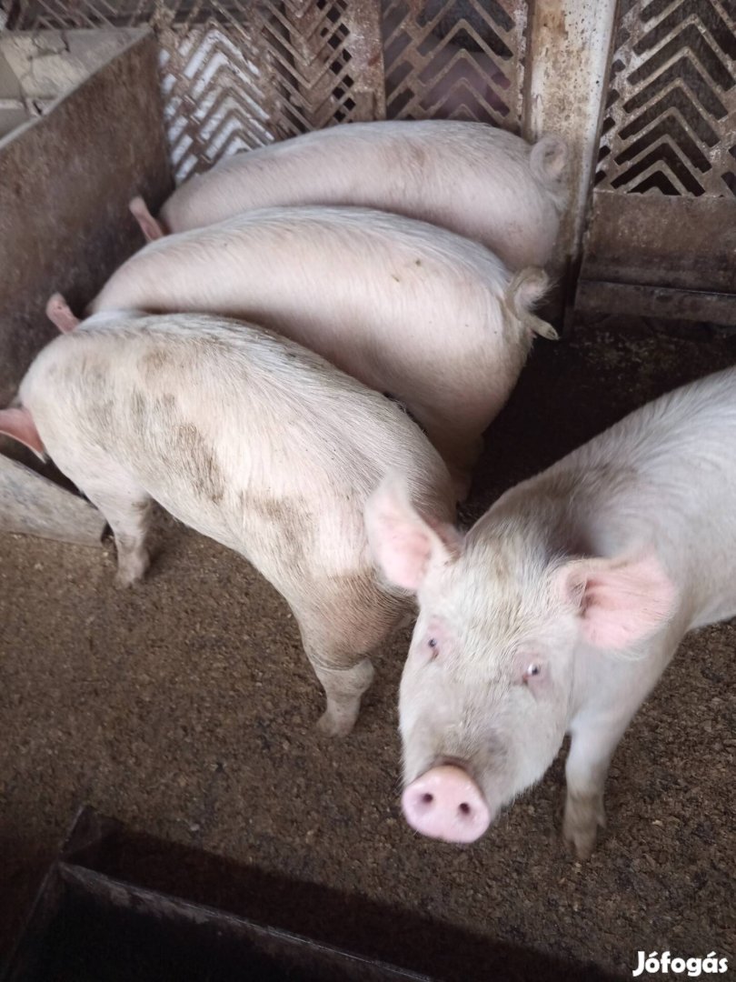 Szép sonkás süldők eladók lehetőleg falkánkent egyben Dinnyésen 6db 70-80kg és 9db50 -60kg nagyfeher X dánbred és F1 X pietrin . 800ft kg