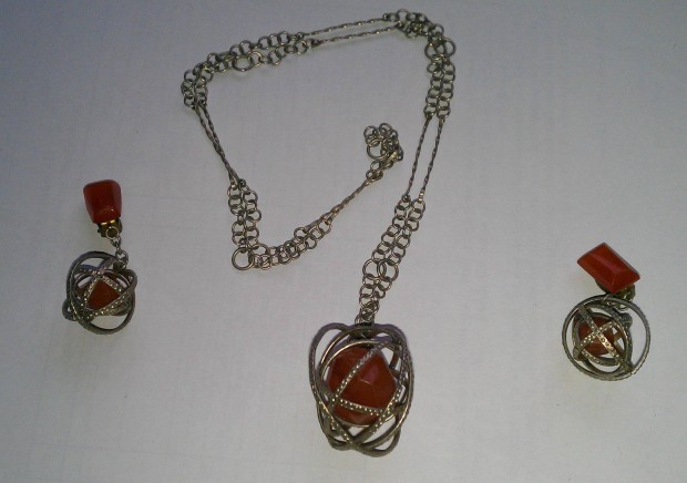 Borostyán klipsz és nyaklánc