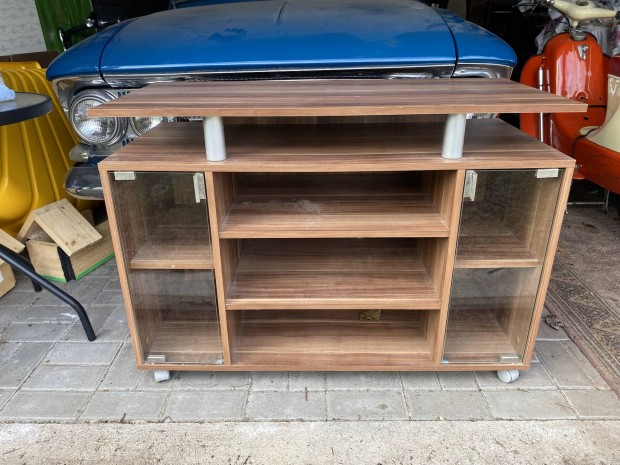 Gurulós tv tartó szekrény üveg ajtókkal