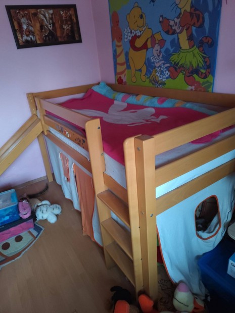 Emeletes ágy, csúszdával, tölgyfa