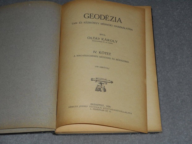 Oltay Károly Geodézia tan- és kézikönyv mérnöki használatra IV. 1920
