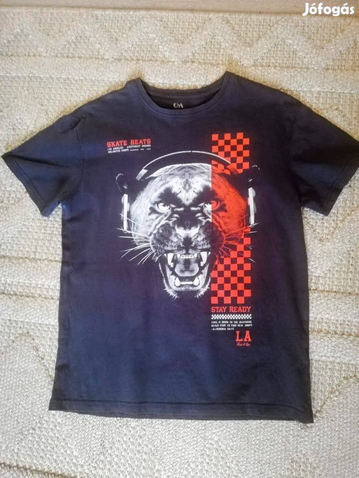 Eladó a fotón látható 164-es méretű fekete, pamut fiú póló megkímélt állapotban.