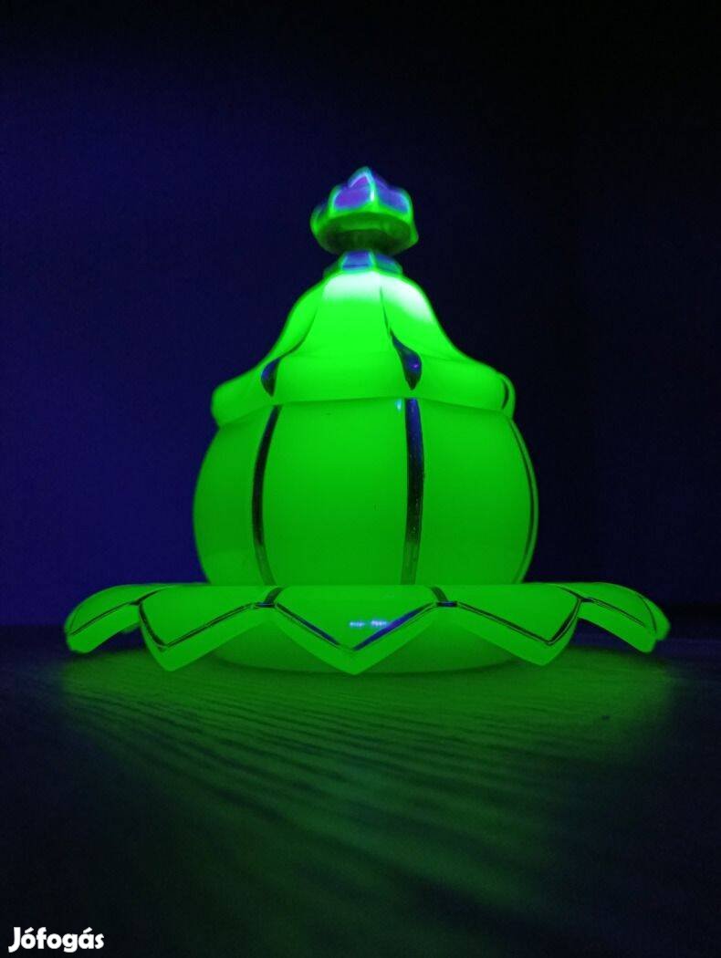 19. század közepe Francia opalin uránüveg bonbonier uránium üveg