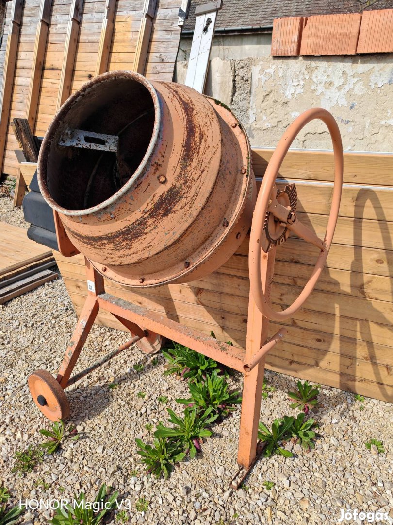 Eladó egy 220 V-os gyari 2 talicskás betonkeverő betonkeverőgép. Régóta áll a dob alján néhány javítható átrozsdásodás kisebb lyuk van a dob csapágyai cserére szorulnak a fogaskerékrendszer rendben a motorja erős jól működik, az ár fix.