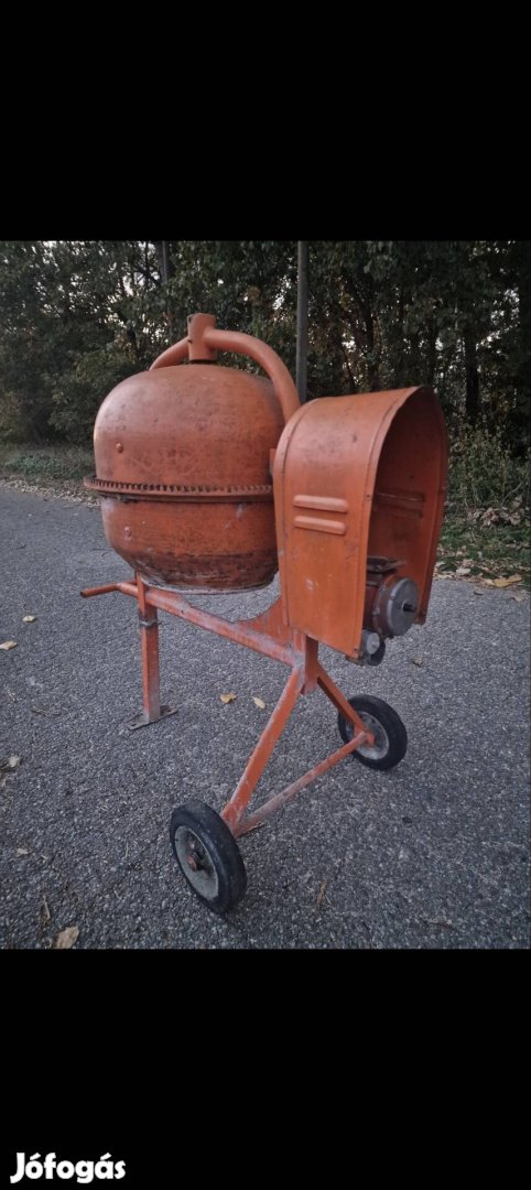 Eladó egy ausztriaból hozott gyári német 220 V-os 120 literes kb. 1,5 talicskás betonkeverő betonkeverőgép. Szerkezetileg jó allapotú nincs szétverve a dobja jó a csapágyazása és a fogaskerék rendszere a kisfogaskereket fotóztam nem kopott. A gyári motor működik a ventilátor és a védőburkolat nincs meg hozzá, kérésre Viber-re vagy Whatsapp-ra videót küldök a gép működéséről.