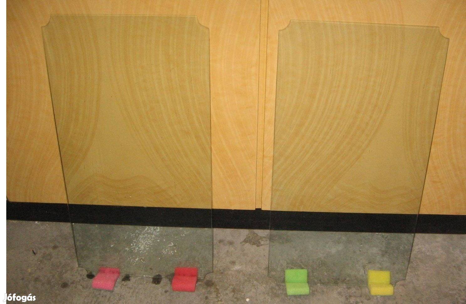 2 db köszörült élű üveglap együtt eladó. Méretei: 68 x 36 cm, 4 mm vastag. Mindkettő lap sarkai a lap közepe felé 2,5 cm sugárban ki vannak marva. Ára: 3000 Ft.