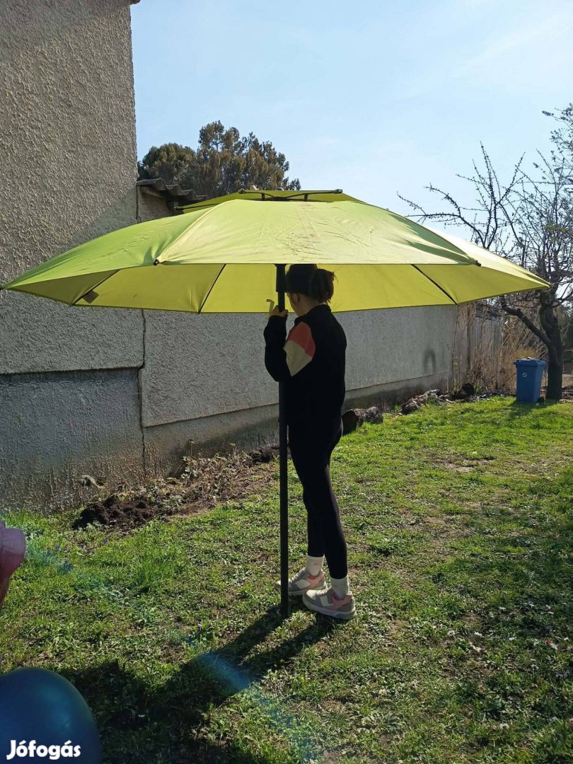 Eladó egy kb. 2 méter átmérőjű napernyő, jó állapotban van.