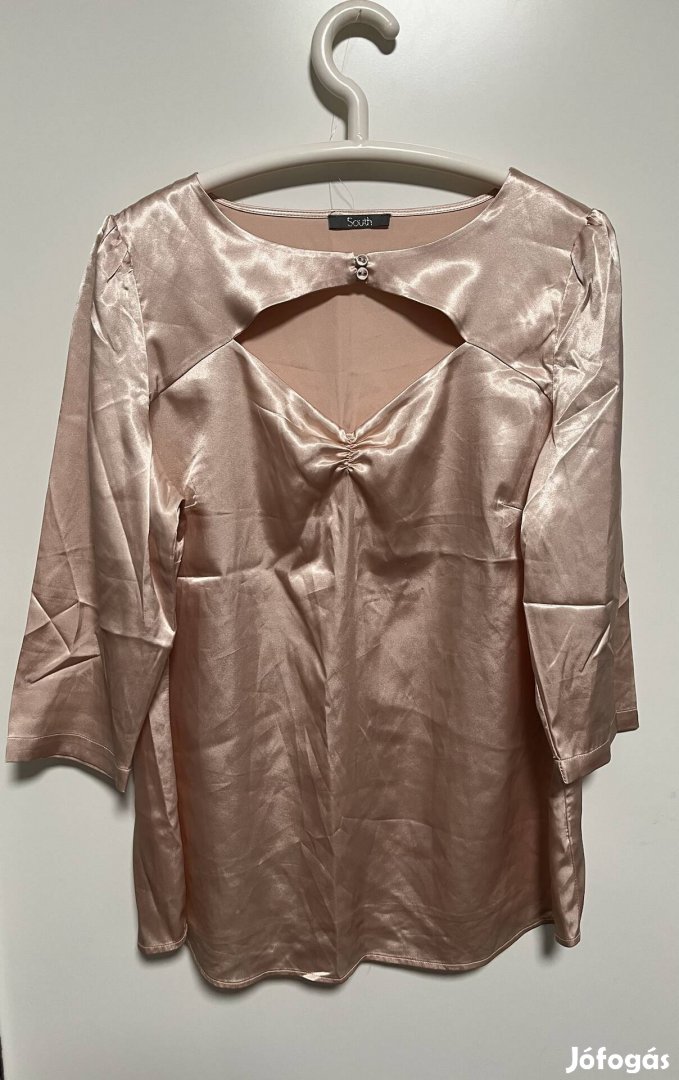 Elegáns, enyhén fényes szatén blúz világos rózsaszín árnyalatban. Háromnegyedes ujj, mellrészen kivágás és díszítő részlet. Laza szabás, különleges alkalmakra vagy stílusos hétköznapokra.