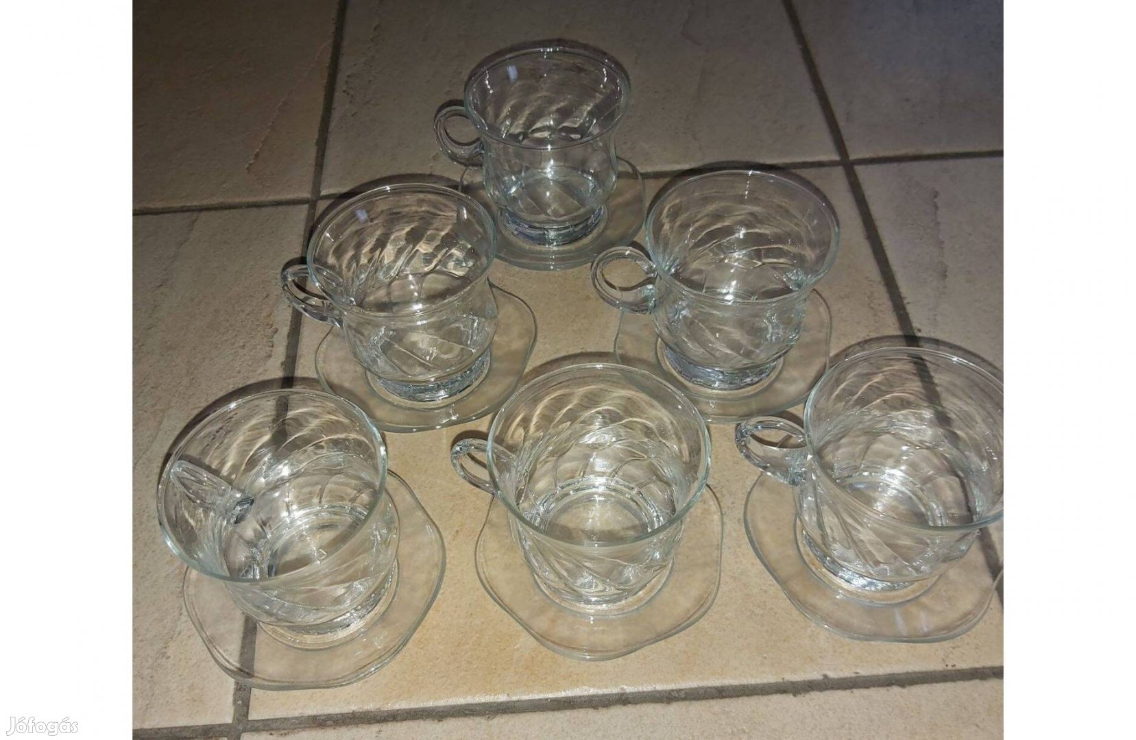 Győrben eladó, a képeken látható, hibátlan, üveg, 6-os kávés-teáskészlet.