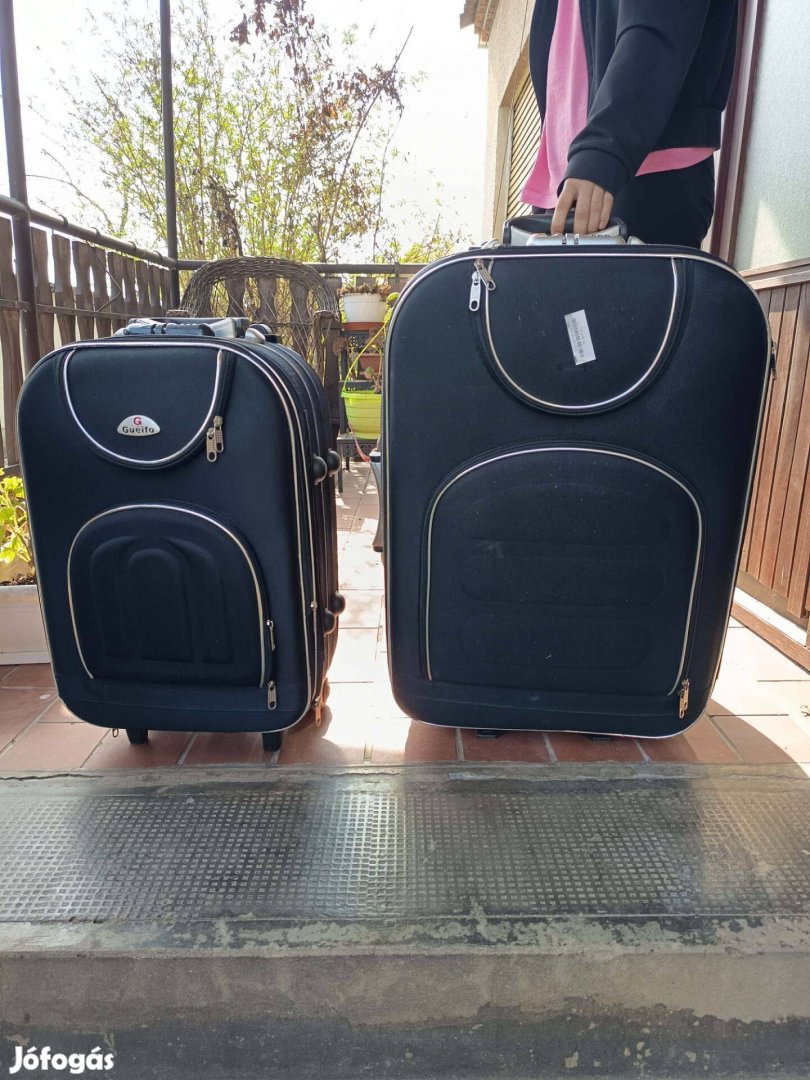 Két, alig használt bőrönd keresi új gazdáját! Masszívak, jó állapotúak, számzárral felszereltek. A nagyobb bőrönd hibája, hogy leesett róla a fém márkajelzés.