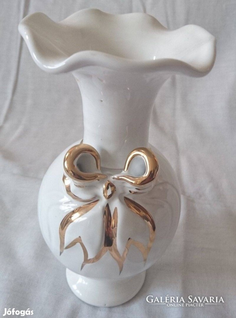 Fehér mázas kerámia váza, magassága 17cm, átmérő: 10cm