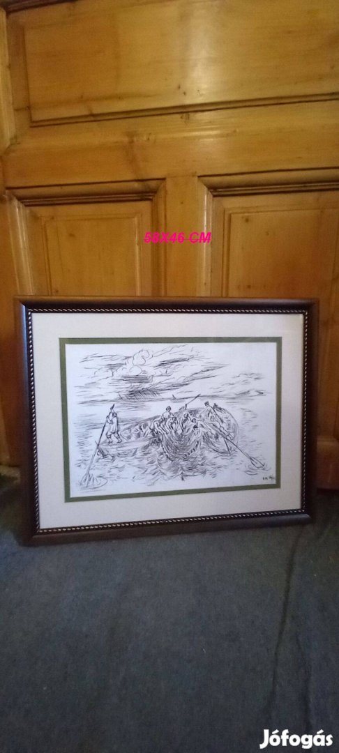 Borsós Miklós rézkarc. Halászok. Szép keretben.