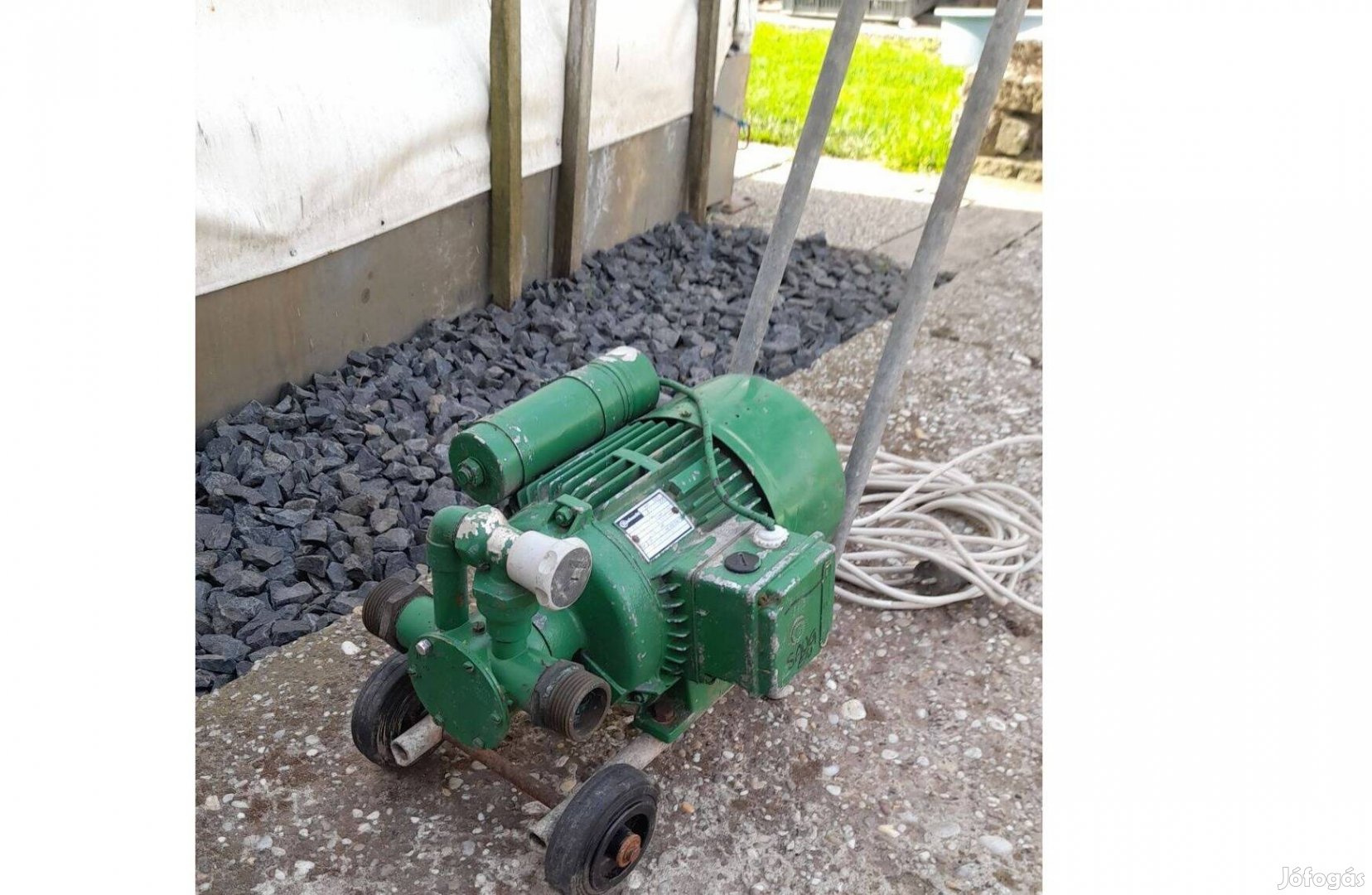 Eladó a fotókon látható hibátlanul működő 220v rézpumpaházas gumilapátos borszivattyú töltésszabályozó csappal kerekeken húzható kb 8m elektromos kábellel.postázás megoldható.tel.