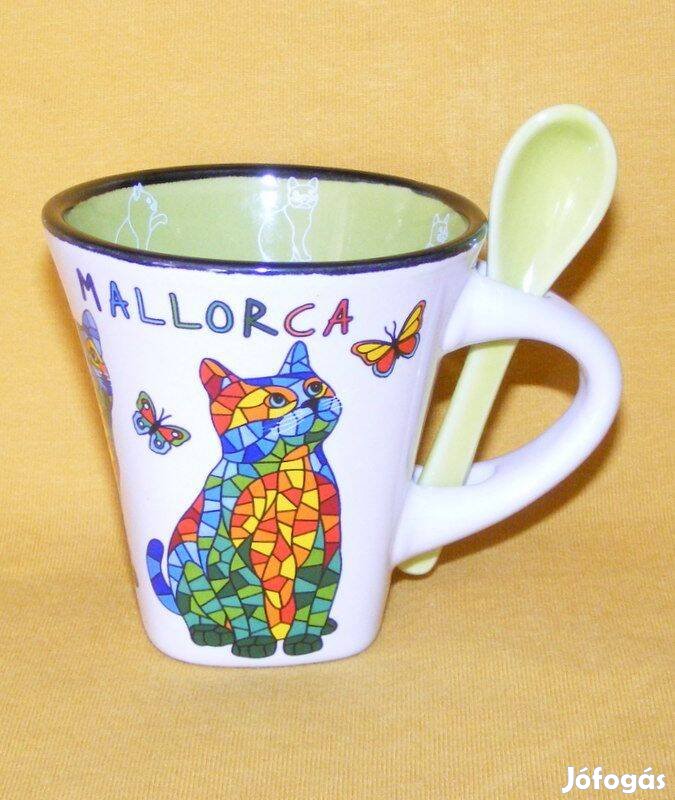 Cicás csésze + kiskanál porcelán Mallorca, spanyol