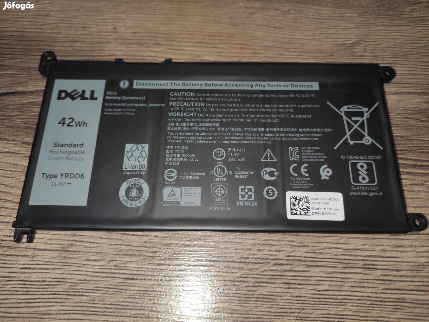 Eladó a képen látható kb fél évet használt Dell 42Wh Yrdd6 akkumulátor hibátlan állapotban.