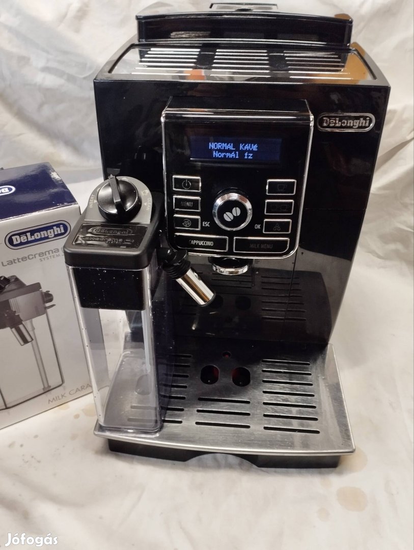 Digitalis kijelzes, magyar nyelvu menu, valaszthato kavefajta, tejes ital keszitese tejtartalybol, allithato kave es vizmennyiseg, orlesfinomsag, szemes es orolt kave hasznalat, forro viz es gozoles, gozfej es uj bontatlan csomagolasu tejtartaly