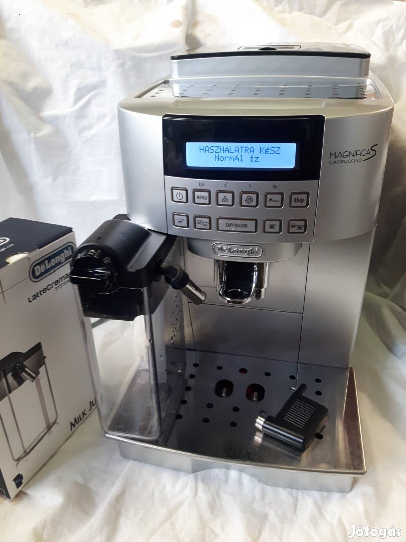 Digitalis kijelzes, magyar nyelvu menu, valaszthato kavefajta, tejes ital keszitese tejtartalybol, allithato kave es vizmennyiseg, orlesfinomsag, szemes es orolt kave hasznalat, forro viz es gozoles, gozfej es uj bontatlan csomagolasu tejtartaly