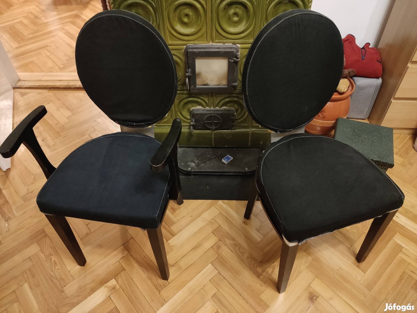 Eladó 6db designer szék. 4db karfa nélküli, 2db karfás. Mosható tépőzáras huzattal.