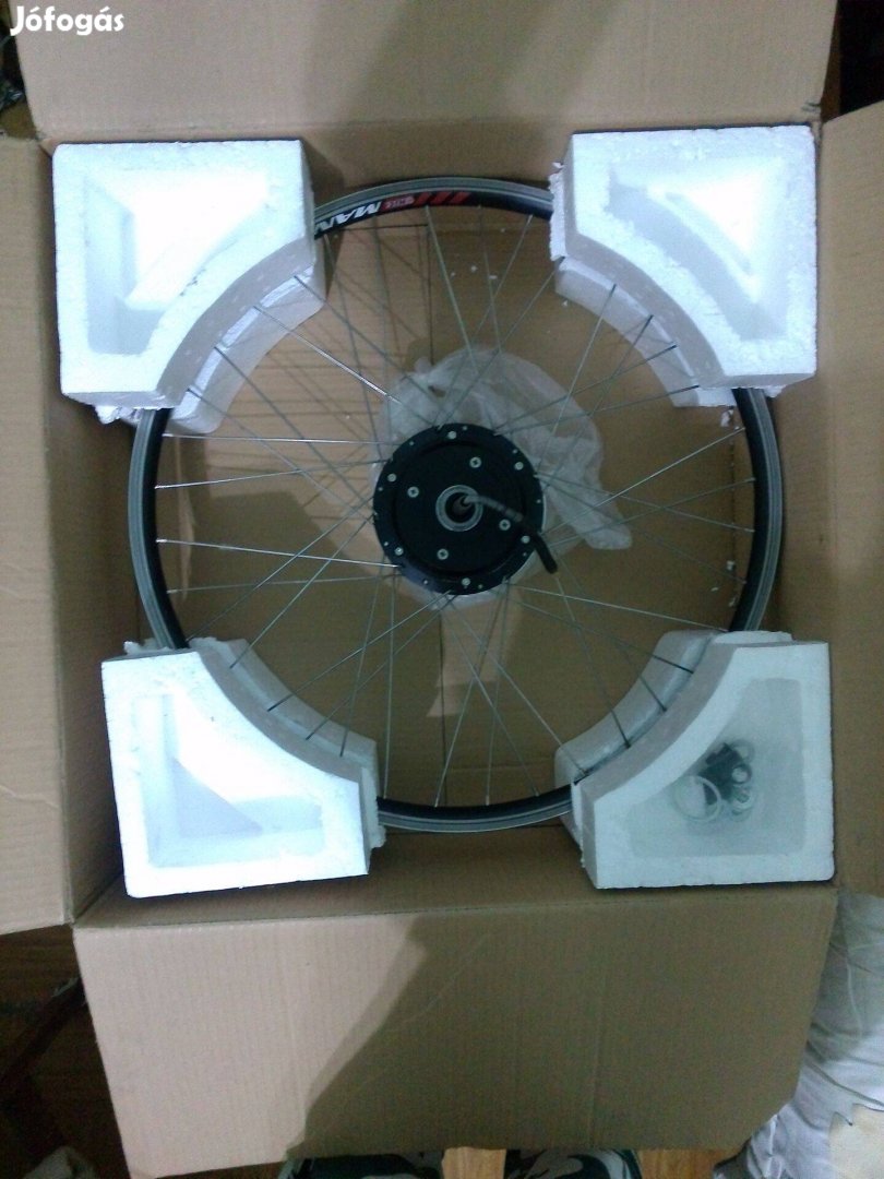 Ez egy új saját összeállítású 26"-os 36V/250W-os hátsókerekes átépítőkészlet sebességkorlát nélkül, a kulacstartó helyére szerelhető alumíniumházas 10Ah-ás akkuval, két kulccsal és egy hozzávaló 42v/2Amp töltővel. ui. a küllőkön lehet hogy kell még húzni.
