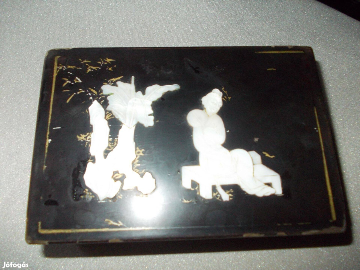 Égetett fadoboz,nagyon régi, tetején berakással!/21