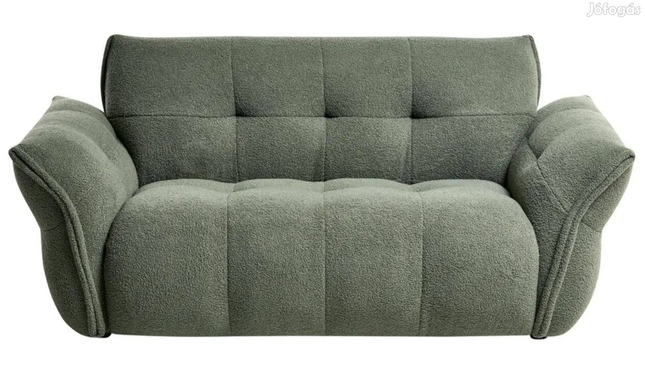 Eladó használt, kisebb anyaghibás, olíva zöld, buklé kanapé.