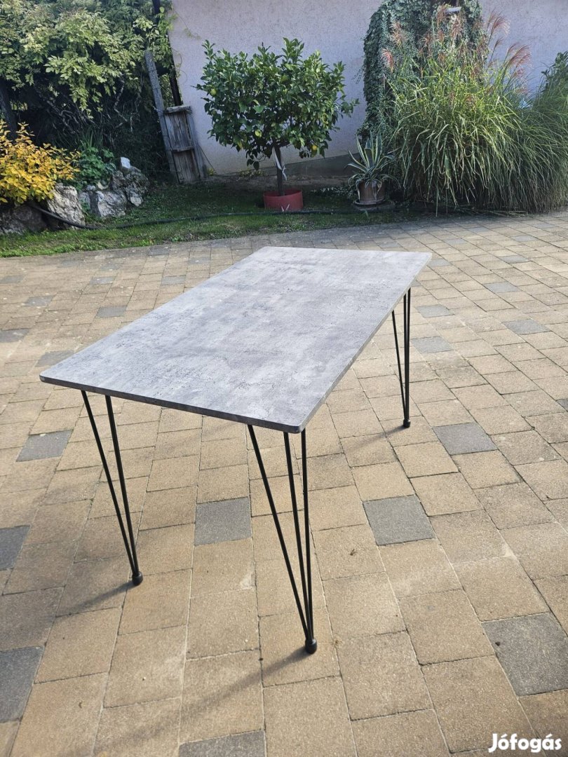 Betonhatású, strapabíró asztallap, fekete hajtű (hairpin) lábakkal.