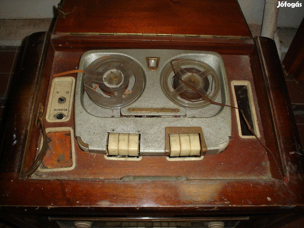 Eladó Sopronban egy régi Terta T 426 M magnós rádió, korának megfelelő fellelt állapotban. Gyártó: Magyar Telefongyár, 1957.