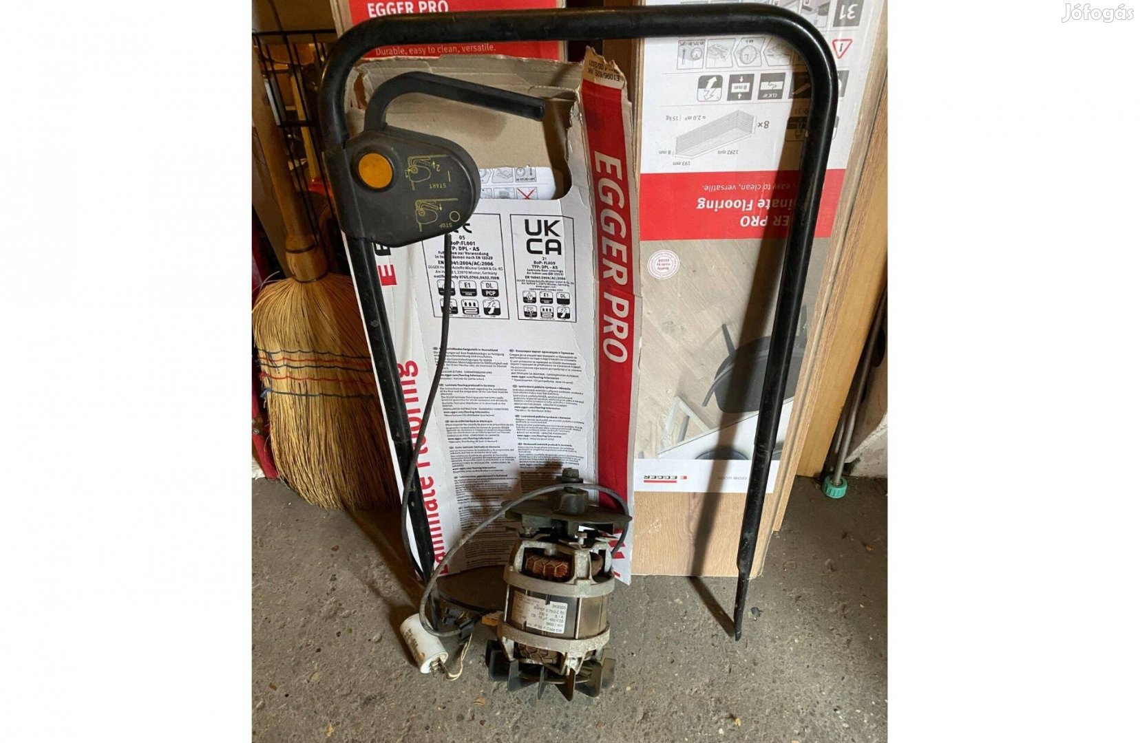 Eladó a képen látható 1500 W-os, 2800 ford/min elektromos fűnyíró motor a fűnyíró tolókarral, elektromos csatlakozóval együtt. Eredetileg egy Alko48 E tip. fűnyírón volt.
