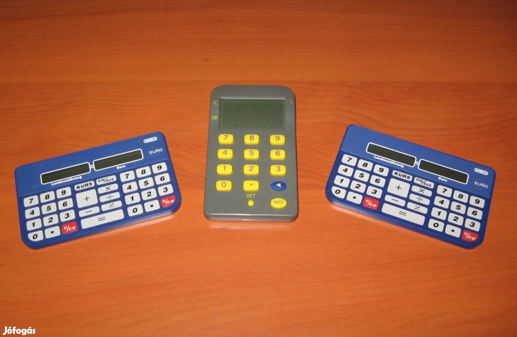 3 db műanyagházas, gombelemes működtetésű Euro-átváltó kalkulátor eladó. Ára: 500 Ft/db.