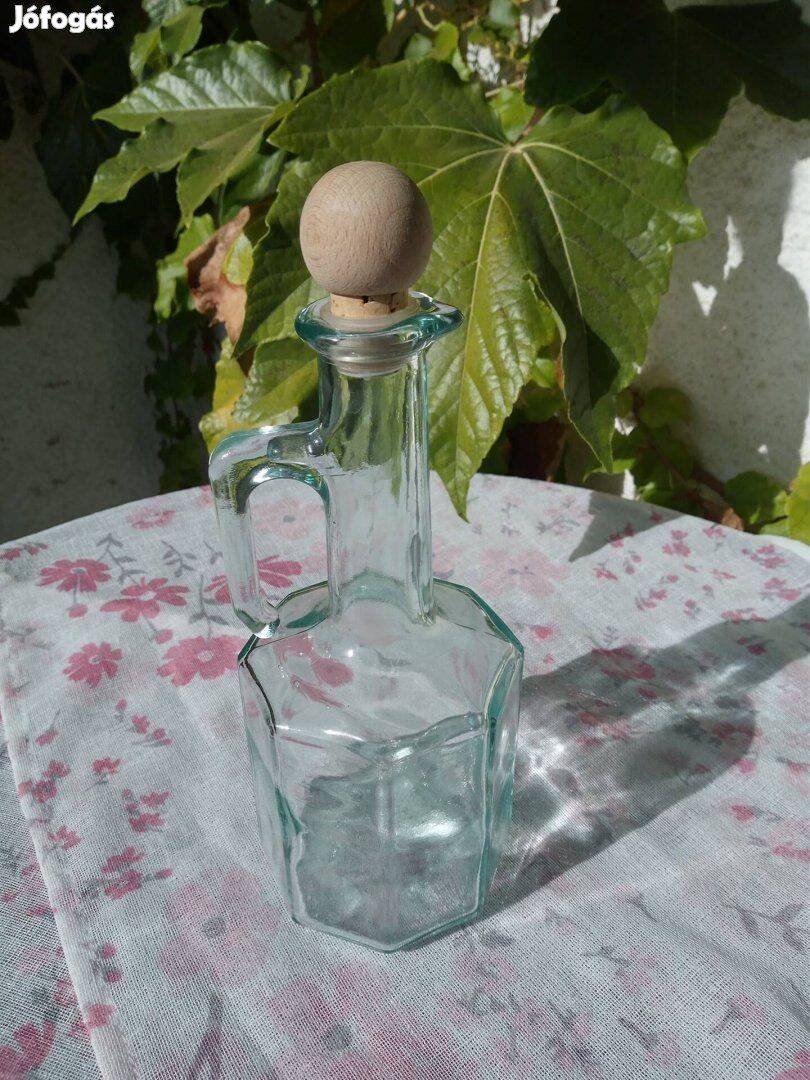 Nyolc szögletű, fél literes, füles kiöntő, olajos kancsó, fadugóval.