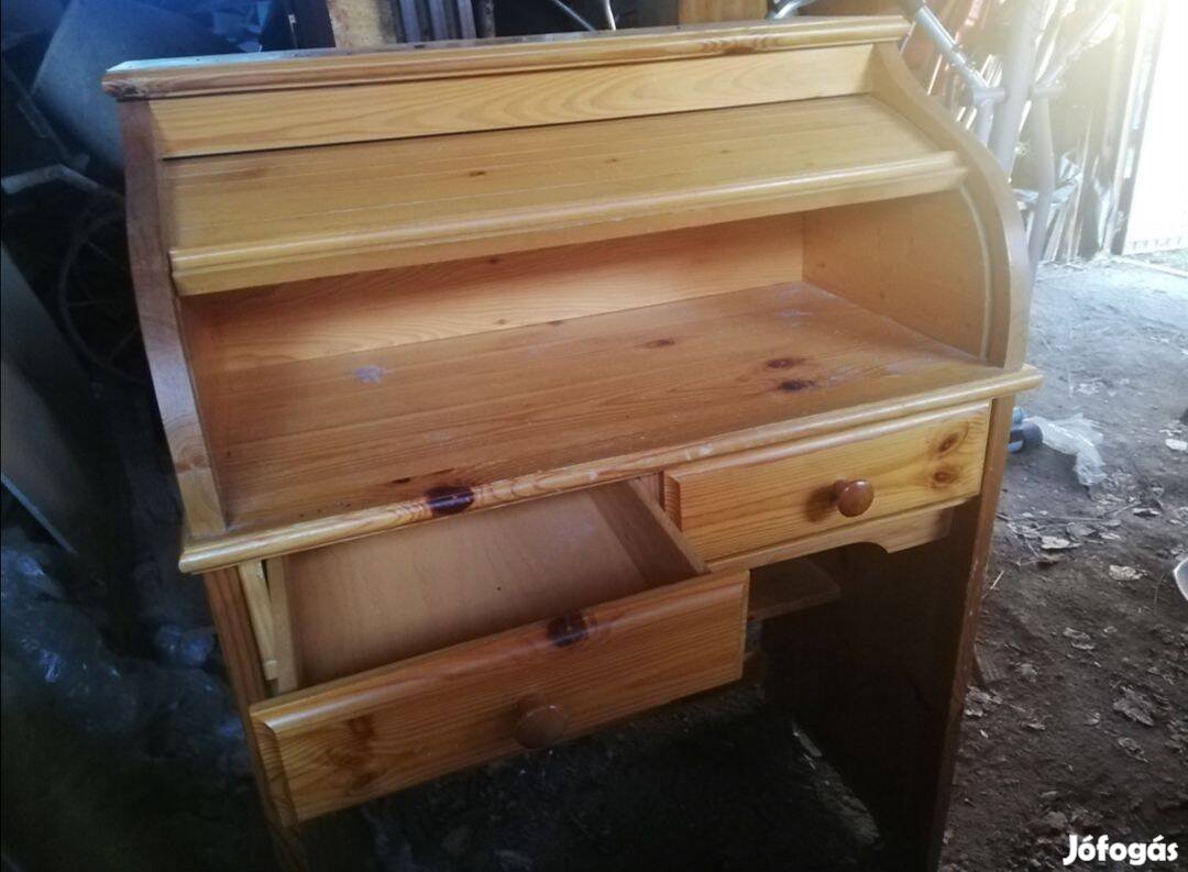 Eladó egy fenyőfából készült redőnyös, két fiókos íróasztal, komód. Méretei 110 cm x 85 cm x 50 cm