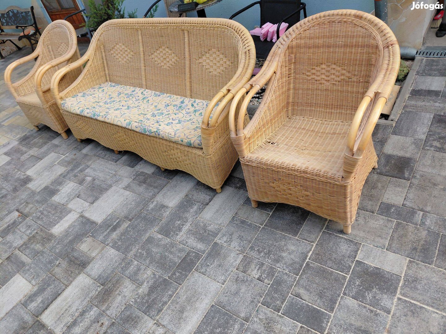 eladó 3 személyes fonott kanapé kb. 1,8 m hosszú, 2 db fotellel. 49.990 ft.