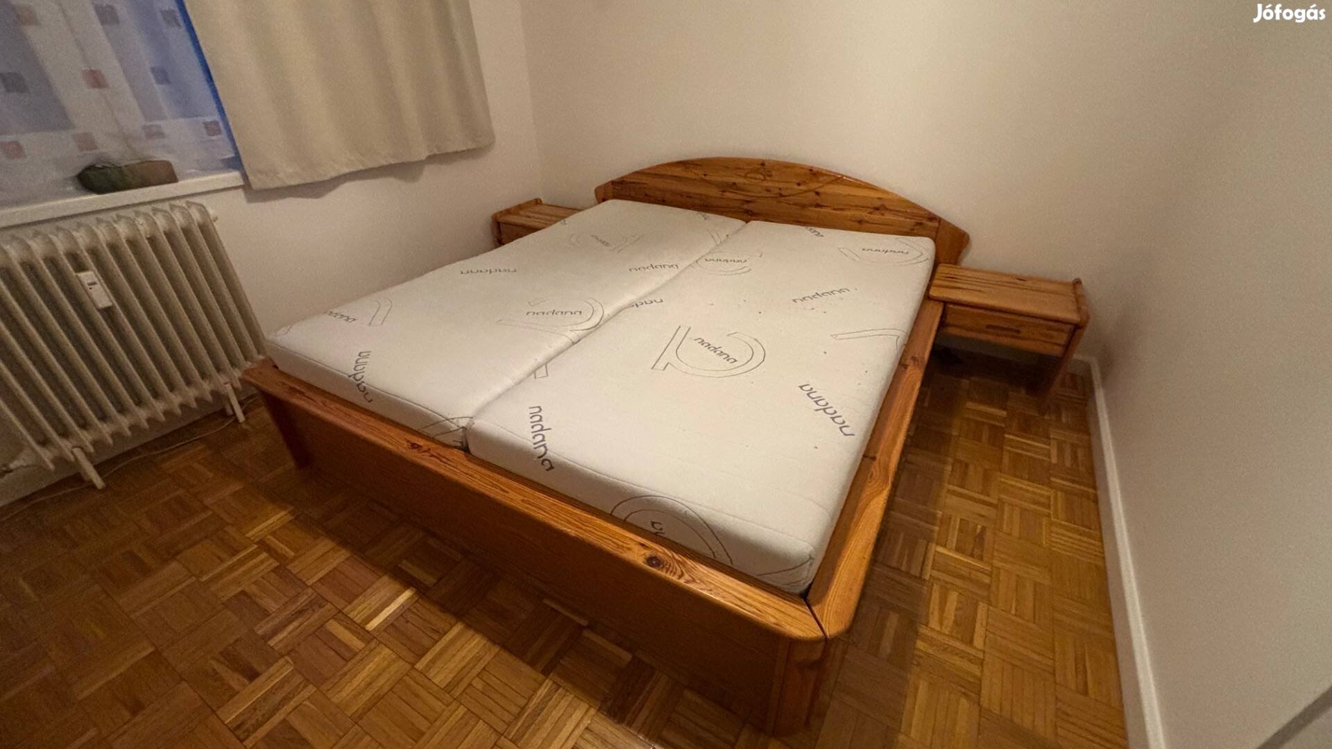 Eladó 180x200 franciaágy ágyráccsal, matraccal és hozzá tartozó éjjeliszekrényekkel.