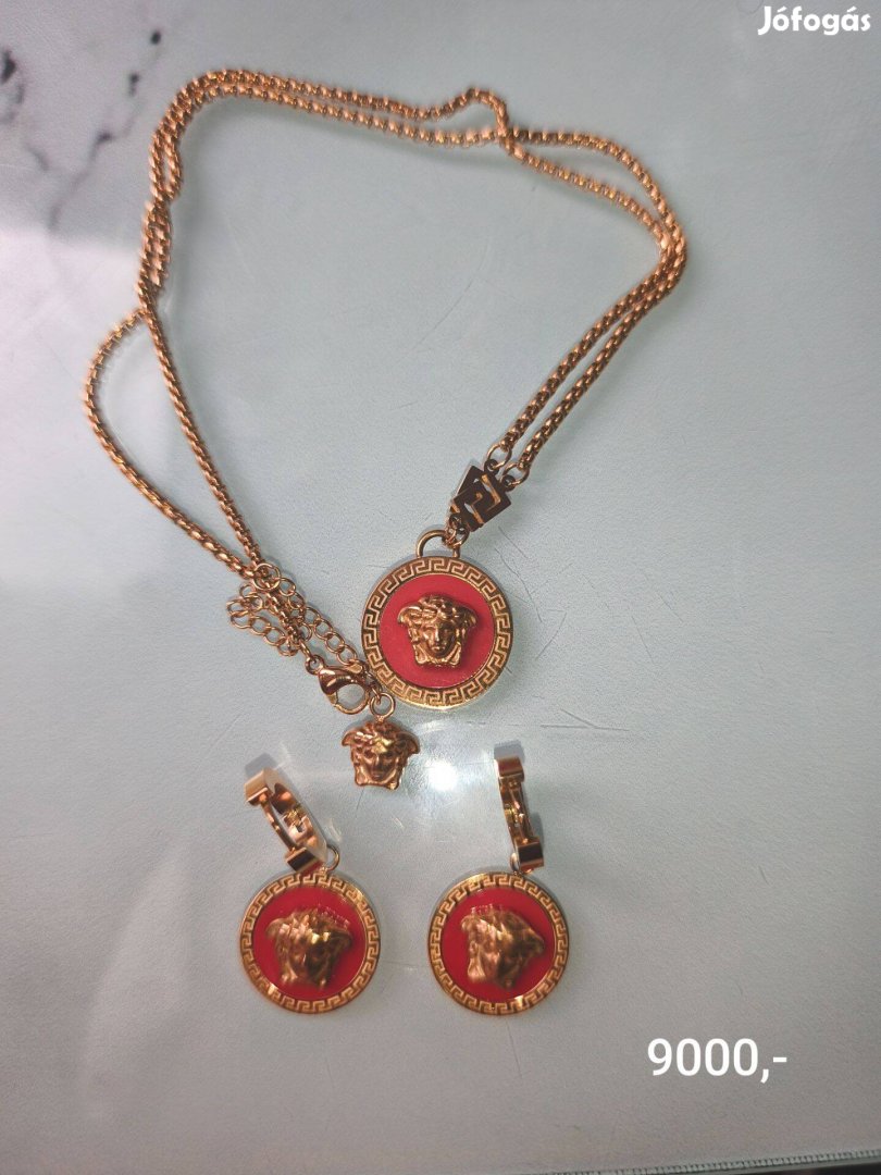 Eladó fülbevaló nyaklánc szett, orvosi acél aranyozott.
