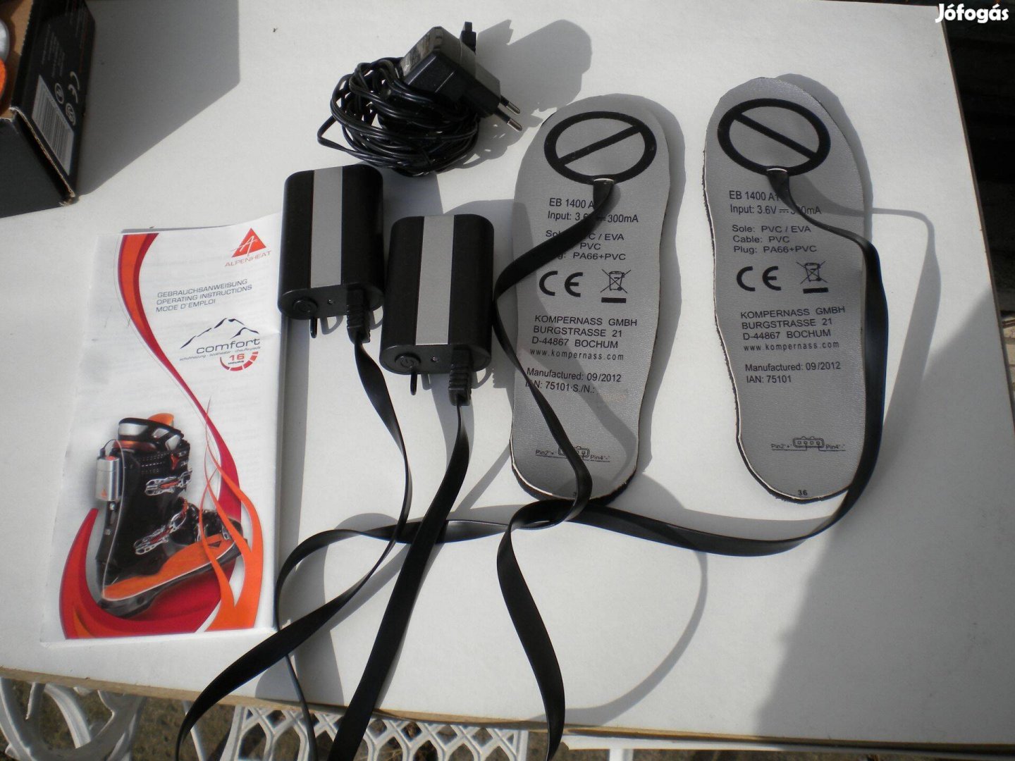 Mérete: 36-os cipőhöz 1 pár fűtőbetét; akkumulátor és töltő