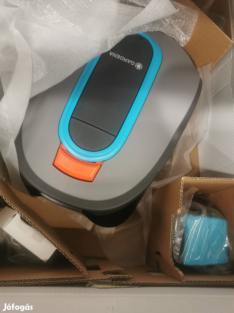 A képeken látható Gardena Sileno Life 1000 Smart Robotfűnyíró wifi távoli elérésű adapterrel, nem használt, új állapotában, dobozában, minden tartozékával együtt.