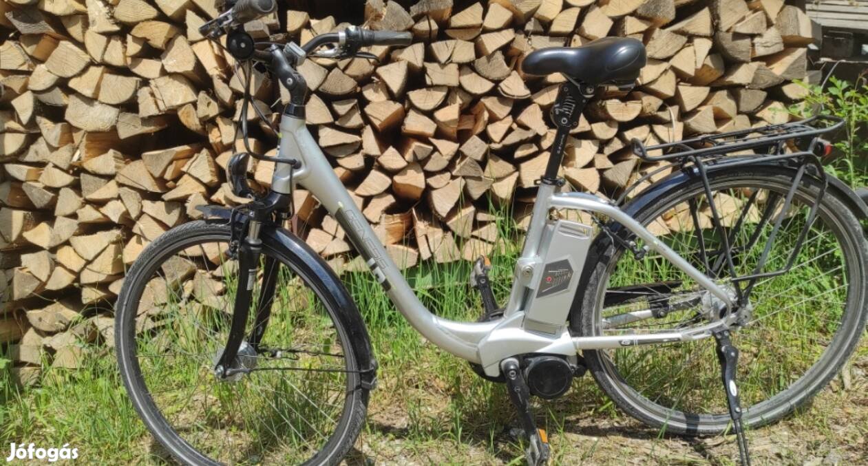 Eladó jó állapotú városi elektromos kerékpár Genesis,kényelmes alacsony átlépésű vázzal. Ideális mindennapi közlekedésre, bevásárláshoz vagy túrázáshoz.