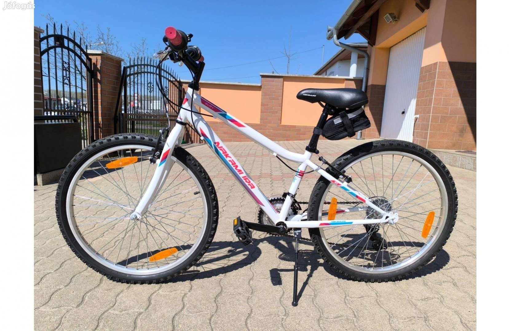 Eladó a képen látható, mindössze pár alkalommal használt, teljesen hibátlan és szép állapotban lévő Nakamura Sury gyerek kerékpár 24-es méretben, 18 (3x6) sebességes váltó rendszerrel, ülés alatti nyeregtáskával, csengővel.