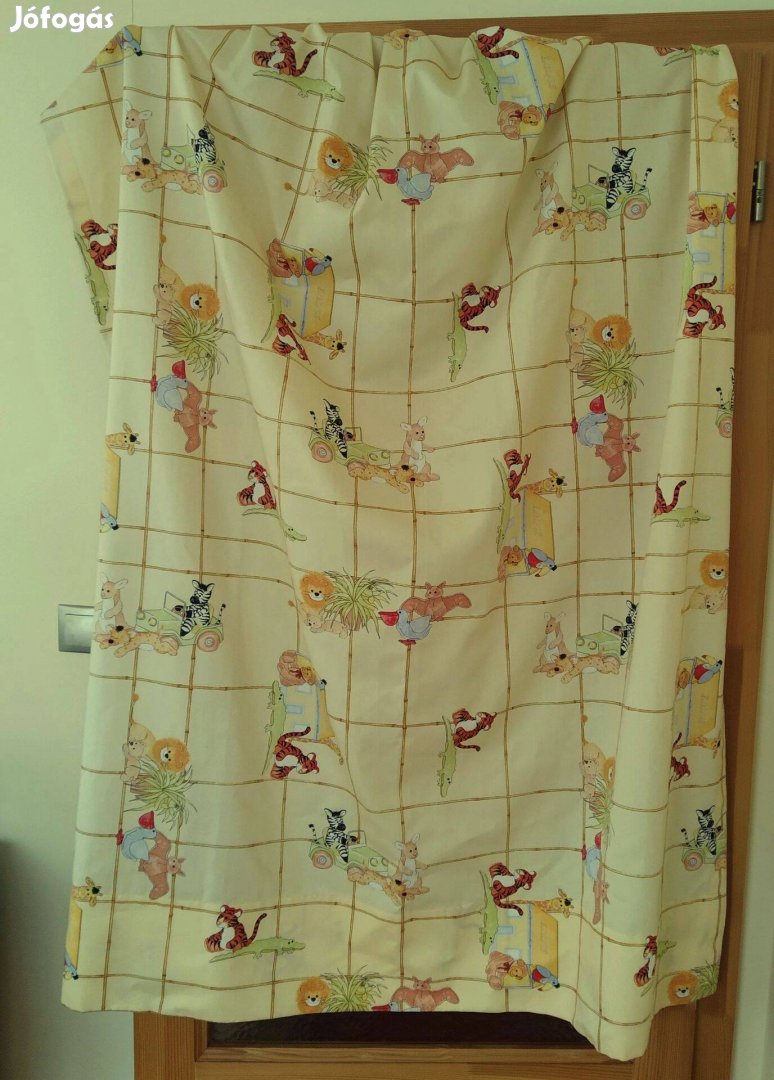 Eladó 3 db nagyon szép, újszerű függöny, gyerekszobába. Citromsárga alapon vonalak között állatképekkel : zebra, tigris, kenguru, oroszlán, krokodil, denevér, pelikán, zsiráf, majom, stb. Függőlegesen 160 cm hosszúak ( a lelógás ), a szélességük felül, beráncolva 55 cm ( alul az anyag teljesen széthúzva 128 cm ). Alul a 2 sarkaikban jókora ólomsúlyok vannak belevarrva. Fent behúzózsinór van, szerintem szélesebbre is lehet kicsit engedni, ha kell. Anyaguk erős, s majd egy kis vasalásra szorul. Kisebb ablakhoz ideálisak egy gyerekszobában...
