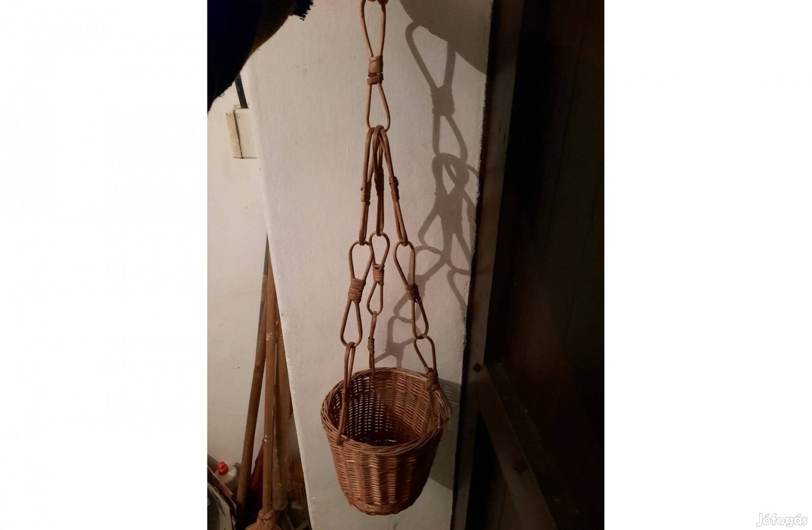 Használt függő fonott kosár virágtartó. Nincs elszakadva sehol, színe kicsit már kivilágosodott.