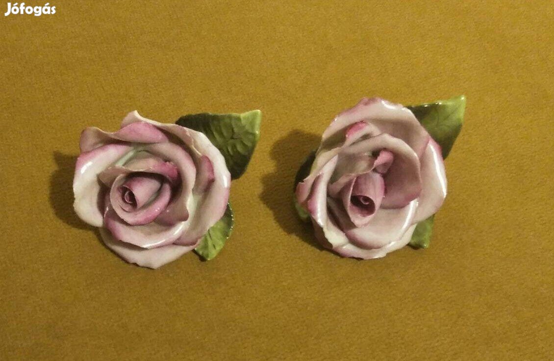 Mindkettő rózsa szirma sérült (nem feltűnően): lepattant a festett felület és előtűnt a fehér porcelán.