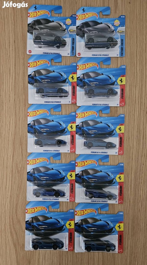 Eladó a képen látható Hot wheels Ferrari pack. 10 db. 2 szürke, 8 kék. Keresett modellek, nagyobb tételben máshol nem kapható.