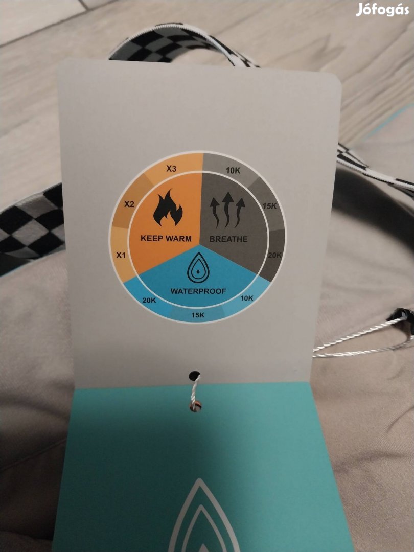 Vízálló és lélegző technikai anyagból készült, hideg időre tervezve.