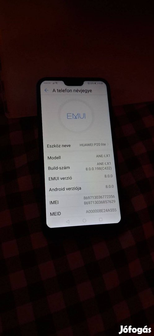 Eladó egy szép állapotú Huawei P20 Lite mobiltelefon.
