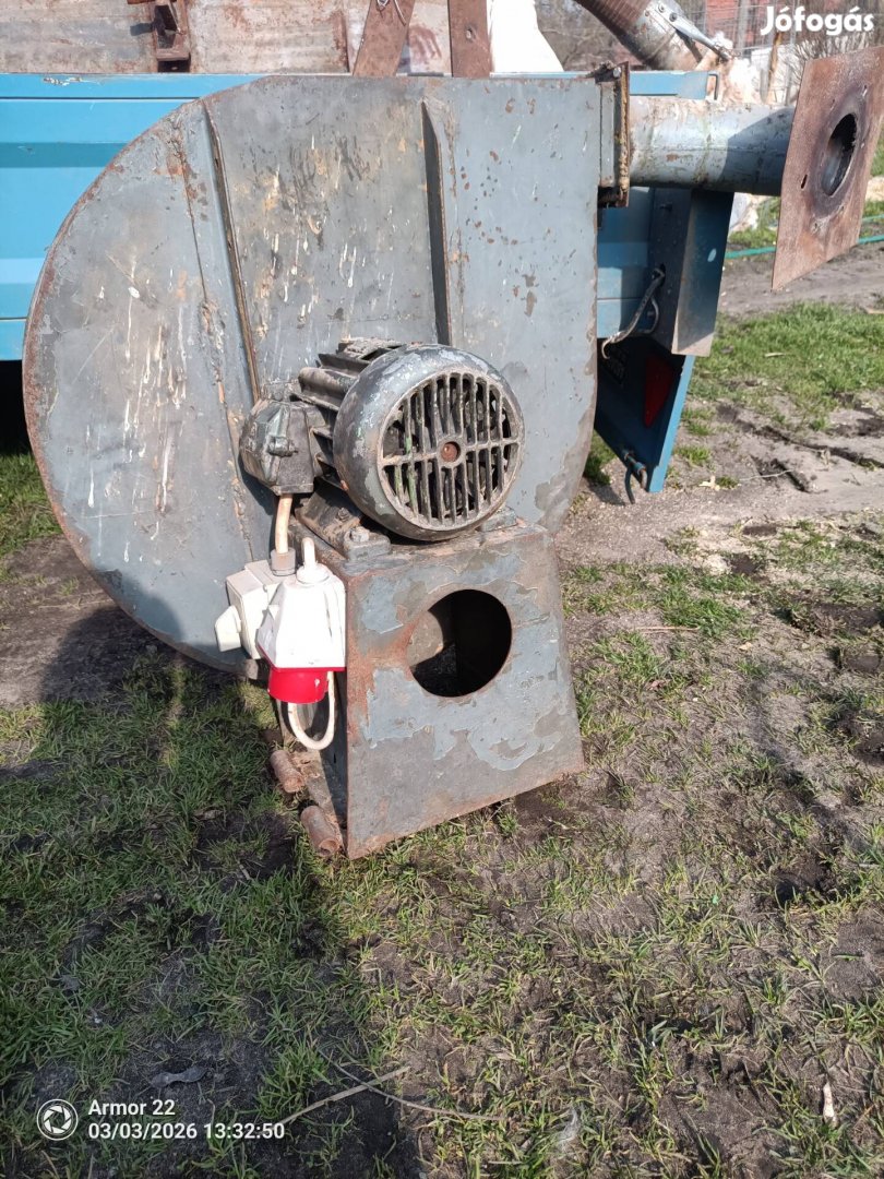 Eladó nagy teljesítményű ipari forgács elszívó ventilátor, két zsákos kb 200 literes fém tartállyal , 2,5 méter hosszú 110-es fém csővel!