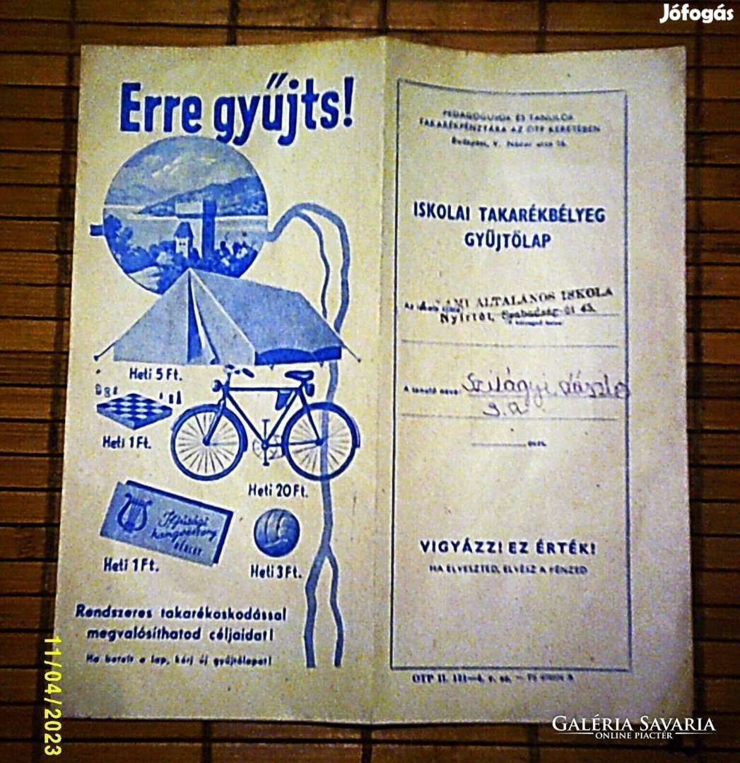 Iskolai takarékbetét gyűjtőlap (1960-as évek)