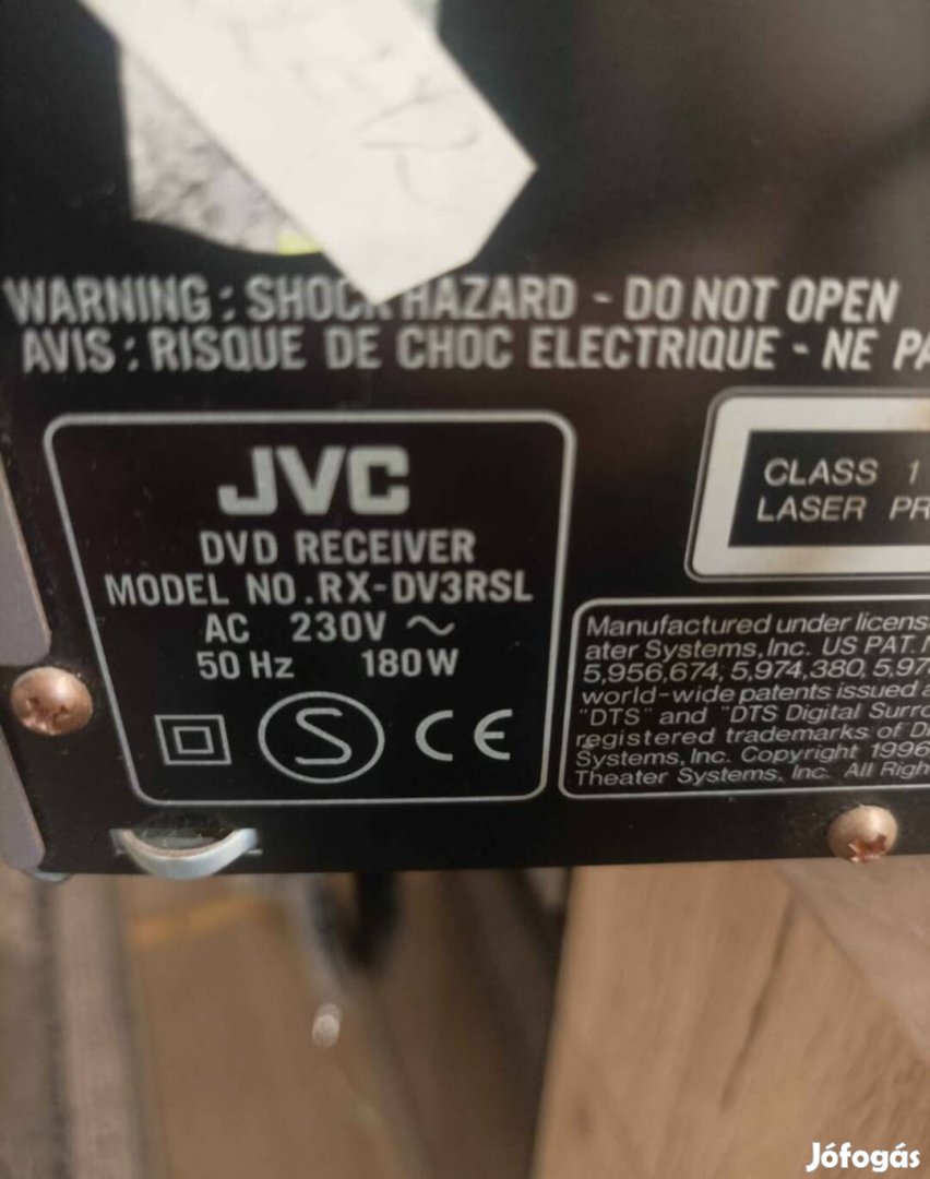 JVC RX-DV3RSL típusú DVD receiver látható. Ez egy 5.1 csatornás házimozi rendszer központi egysége, amely egy digitális progresszív pásztázású DVD-lejátszót és egy rádióerősítőt egyesít egyetlen készülékben.