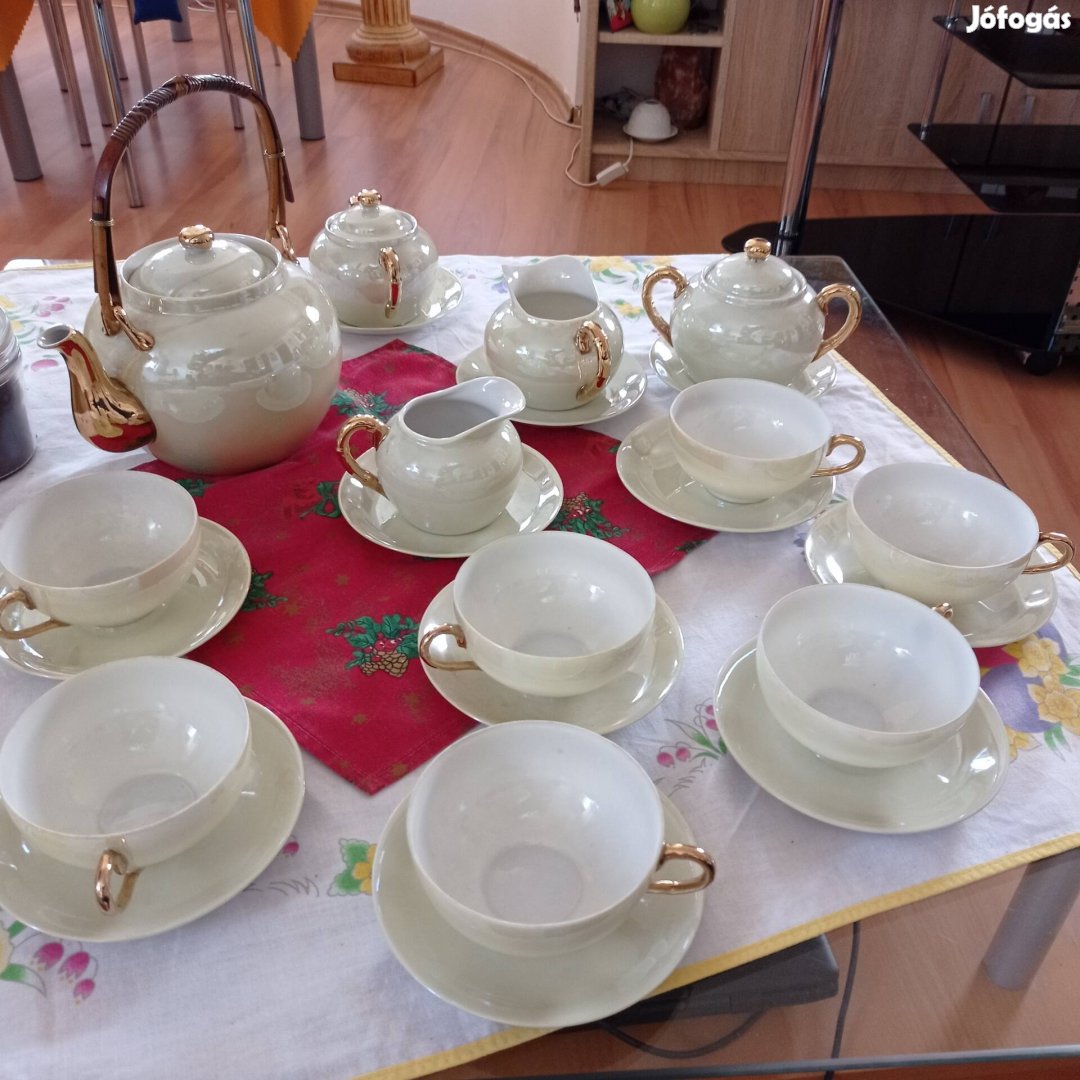 Lehelet könnyű, átlátszó, gyönyörű készlet . 7 db csésze és tanyér, kiöntők. Hibatlan állpotban. Átvehető személyesen Sopronban.