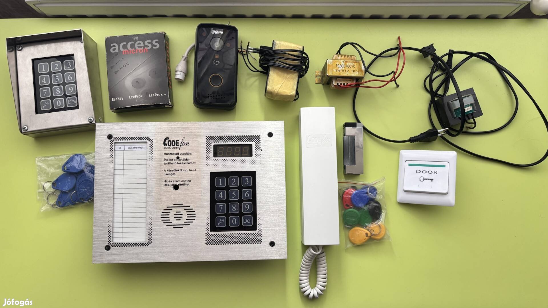 Eladó a képen látható kaputelefon szett, beléptető rendszerek, mágneszár, videó kaputelefon, kilépő gomb, proxy chipek, tápegységek. Villamos szaküzletből vannak, újak, kiállítási darabok voltak. A termékek eredeti bolti árával 221.000,-Ft lenne egyben, de mivel kiallítási darabként használva voltak ezért 140.000,-Ft-ért elvihető! (esetleg alkúképes) Egyben eladó! Személyesen Győrben átvehető! Saját költségre foxpostal is elküldöm.