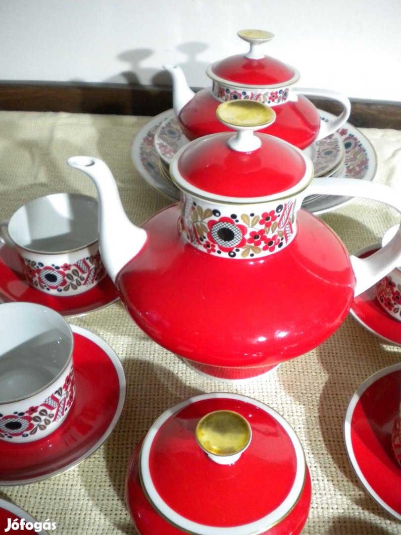 Ez egy hibátlan vitrin állapotú piros Freiberger Porzellan süteményes, teás-kávés készlet.